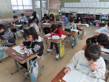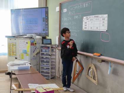 「調べ方と整理の仕方」調べたい項目が2つあるときは別々の表よりも、1つの表にまとめた方が比べ易く見やすいことに気が付きました。3年生の時にも確認するために使った「正」の字を使って調べ、表を読み取っています。