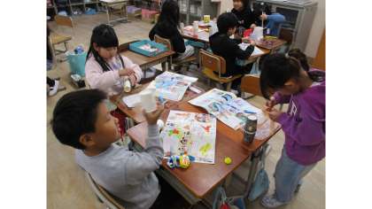 どれを滑らせてみたいかを考え、滑らせてみたいものに合わせて、材料を選びました。「鳥を滑らせる」「こいのぼりを滑らせる」「くらげを滑らせる」など、子ども一人一人アイディアを出し合っていました。