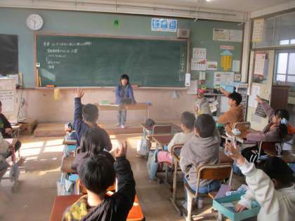 3学期も係活動を頑張る人が多いです。写真は、クイズ大会をしている様子です。