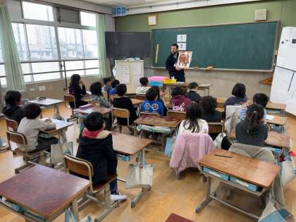 ALTのマックス先生に英語の絵本を読み聞かせしてもらいました。興味津々に聞いていました。