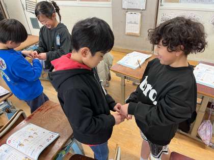 「ずいずいずっころばし」を歌いながら、ペアで手遊びをして楽しみました。