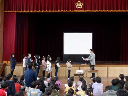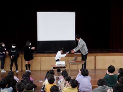 校長先生のお話で、四字熟語を三つ教えてもらいました。「やると決めたことを、最後まで、失敗してもあきらめずにがんばろう!」と思いながら、しっかり聞いていました。書写と読書感想文の表彰もありました。