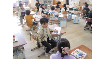ゲームを通して、色の言い方を聞いたり言ったりすることを楽しんだ後、相手に分かりやすいように、欲しい色を伝え、やり取りをする活動を行いました。初めは、戸惑っていた子ども達ですが、徐々になれてきて、ジェスチャーで表現したり、笑顔で話したりと生き生きと活動する姿が見られました。