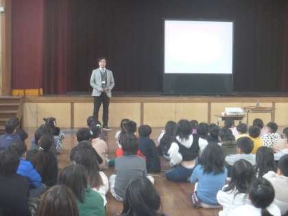 校長先生から四字熟語を3つ教えてもらいました。「有言実行」「七転八起」「初志貫徹」です。「自分でやろうと決めたことを最後まで頑張ること」「失敗しても諦めないこと」を頑張っていきましょう!