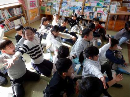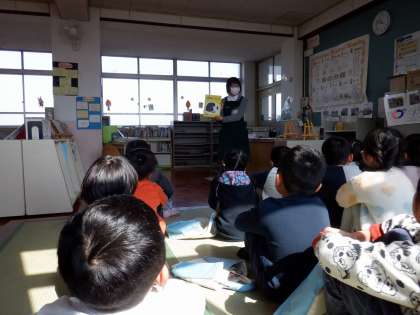 久我の杜図書館の方に、春の初めの本を3冊も読んでいただきました。まだ寒い日が続いていますが、春がもうすぐそこにきていることを感じられました。おいしそうなスープを食べたくなったり、知っている昔話を楽しんで聞いたりしました。手遊びも楽しかったです。