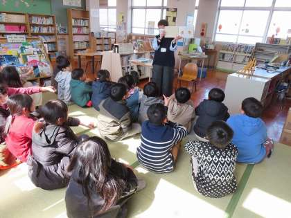 「ブックトーク」4校時の後半は、図書館でブックトークと読み聞かせをしていただきました。ブックトークでは、先を読みたいな、知りたいなというところで本の紹介が終わるので興味津々の様子でした。