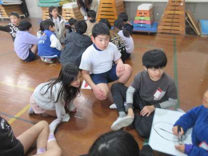 今回の児童集会は、5年生が中心となって進めました。各グループの先頭に立ってカードを掲示したり、話し合いの中心になったりと大活躍でした。