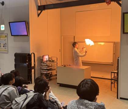 サイエンスショーの様子です。物が燃えるしくみを学びました。