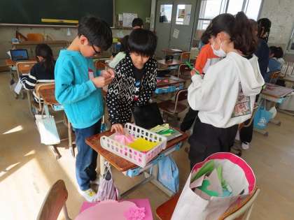 4年2組のメンバーで過ごすのも残り10日余りとなりました。最後にお楽しみ会をしたいという意見が出ました。残りの2週間は、お楽しみ会に向けた係に集中することになり、どのグループも張り切って準備をしています。