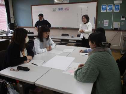 今回の家庭教育講座は、「子育てのことをはなしましょう」というテーマで、支援者をお迎えして実施しました。和気あいあいとした雰囲気の中で、子育てで困っていることなどを話しました。