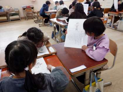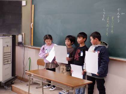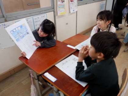 国語科で、できるようになったこと、がんばったことを文に表して、友だちと伝えあいました。感想も伝え、「できるようになってよかったね。」「それ、すごいね。」などの言葉をもらって嬉しそうにしていました。