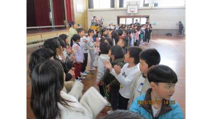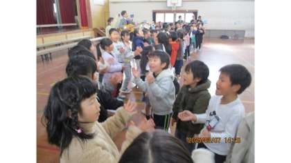 6年生送る会の最後の退場では、全校みんなで花道を作りました。校長先生のギターと教頭先生のピアノに合わせて、納所バージョンの歌詞で、6年生を送りました。