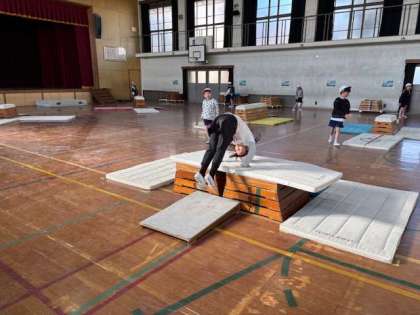様々な場で跳び箱を使った遊びを考えることができました。跳び越すだけでなく回ったり、手をたたいたり。いろいろな工夫を見せてくれました。