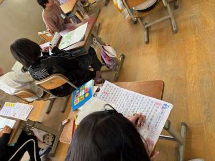 2年生で学習した漢字の総決算。最後の漢字テストに挑みました。テスト前にしっかりと見直し、少しでも高い点を取ろうと意気込んでいました。結果やいかに・・・