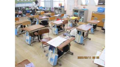 3月11日は、東日本大震災が起きて、14年目の日にあたることもあり、シェイクアウト訓練を行いました。子ども達と一緒に、津波が起きた場合は、出来るだけ海から離れた所に避難することや、高台に避難することの大切さについて考えました。