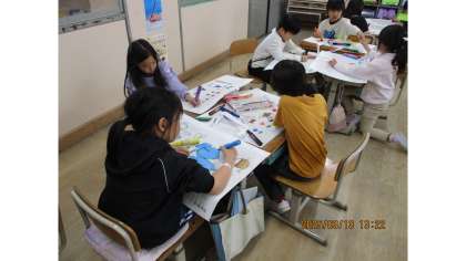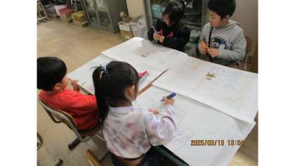 今日の図画工作科の学習では、今まで描いてきた作品を入れる作品袋作りをしました。自分の大事な作品を入れる袋なので、気持ちを込めて、思い出となる絵を丁寧に描いていました。