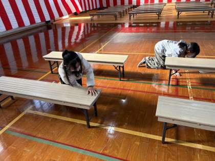 安全に式ができるように、椅子の点検もしています。