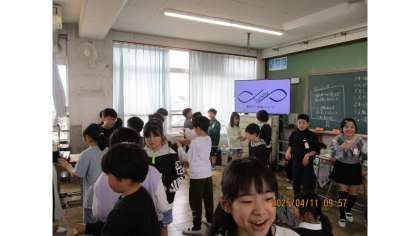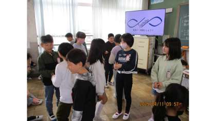 学年目標の話の後、学年の仲を深めるために、セブンイレブンゲームとラインゲームをしました。セブンイレブンゲームでは、二人組になって「せーの」で出した指の数のが、7や11になったら、その場で座ることができます。ラインゲームでは言葉を出さずにファーストネームをあいうえお順で並んだり、4月からの誕生日順にならんだりしました。どちらのゲームもとても楽しそうに取り組んでいました。