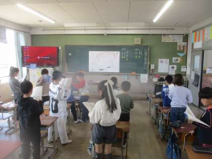 「春のうた」の詩を学習しました。春を待ち望んでいたかえるの気持ちになって、楽しく明るく元気に読む姿が見られました。お家でも音読をします。是非、子ども達の表現力を楽しんでください♪