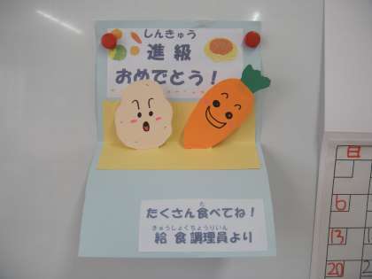 給食調理員さんがお手紙を書いてくださり、子どもたちも大喜びでした。