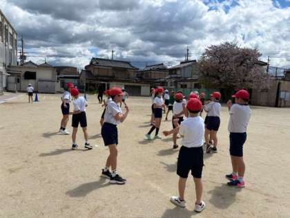 グループで声をかけ合って準備運動!みんなで協力して活動することができる5年生!ステキです!!