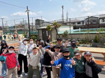 昼休み、みんなで鬼ごっこをしました。その時のやるぞ!という一枚です。みんなで盛り上がりました。