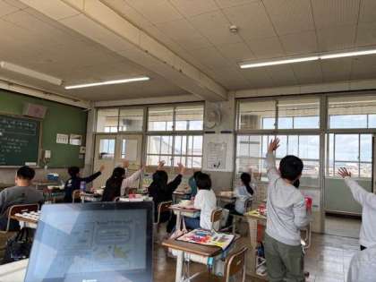 給食終わり、牛乳パックの片付けや歯磨きタイムで5−1の教室前を通る友だちに笑顔で手を振る仲間たち。温かいやり取りに思わずこちらも笑みがこぼれました。