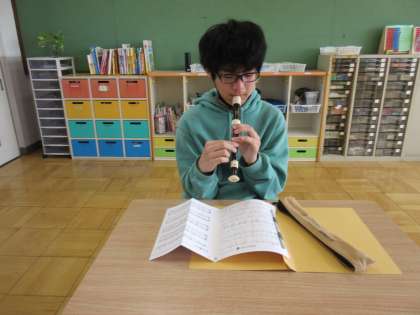 電気オルガンを弾いたり、リコーダーを練習したり、絵を描いたりと思い思いに楽しんでいました。