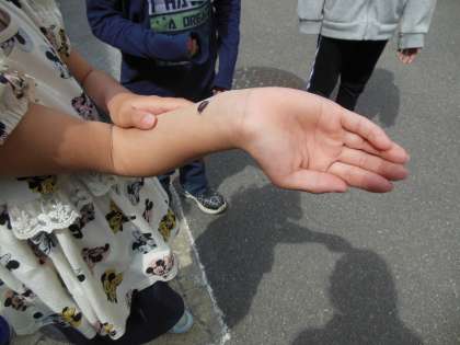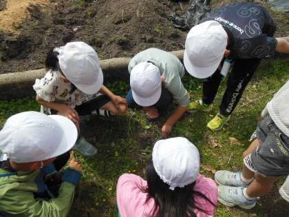 「ダンゴムシ見つけたよ!」「ハチがいた!」と話している声が聞こえてきました。
