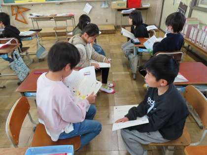 「どきん」自分は、どんな風にこの詩を読むか工夫することをペアの友だちに伝えた後、音読を聞き合いました。聞き手の子どもも友だちの上手なところを発表してくれました。