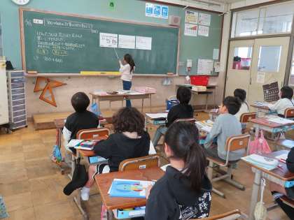 算数の学習のすすめ方とノートの書き方を確認しながら「700+400」の計算の仕方を考えました。「一人で考える」「ペアで考える」「みんなで考える」の中で新たな気付きにつながりました。