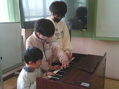 今日は友だちと一緒に楽しそうに弾いていました。