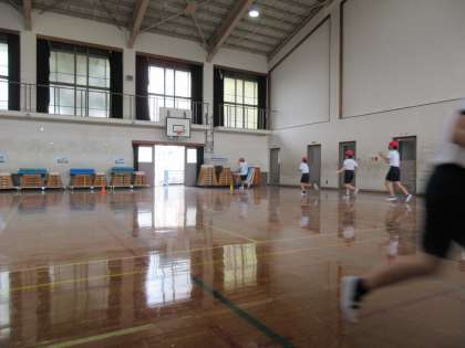 まねっこウォーキングをしました。先頭の人の動きをまねして、楽しく進みました。