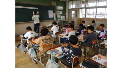 今日の外国語科の学習では、自分の好きな物を言ったり、アルファベットの大文字の練習をしたりしました。初めは、とまどっていた子ども達でしたが、少しずつ慣れてきたようで笑顔で学習に取り組んでいました。