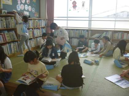 学年で図書室へ行きました。自分のお気に入りの本は、見つかりましたか?