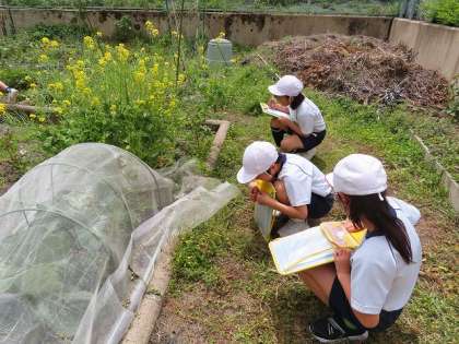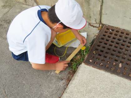 「たんぽぽ」や「だんご虫」「菜の花」などを見つけて、形、色、大きさ、見つけた場所を観察カードに書きました。