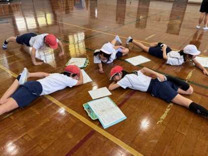 自分の体の柔らかさについて調べました。「これはできるけど、これは・・・無理。」「もーちょいなんやけど!」と楽しみながら活動することができていました。