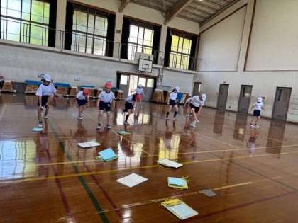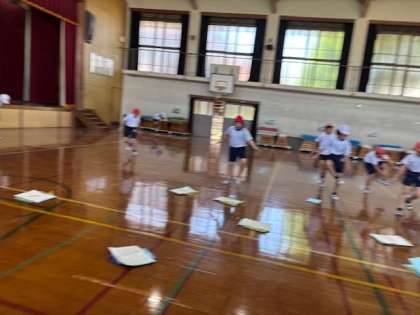 クロスタッチに挑戦しました!グループで話し合いながら、どうすれば20秒間になるべくたくさんタッチできるかについて案を出し合うことができていました!!