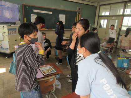 友達のヒーローを英語で尋ねました。子ども達は英語で自分のヒーローを紹介していました。和気あいあいと楽しく活動していました。