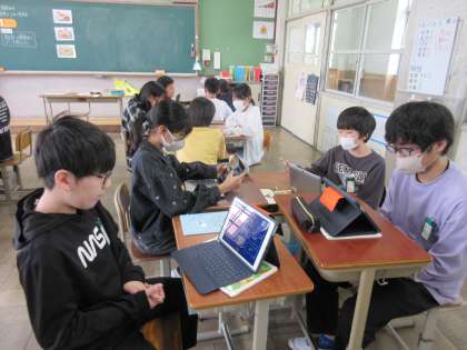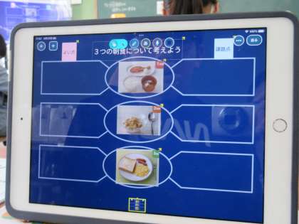 3つの朝食の写真を見て良い点と改善点を考えてロイロノートに書き込み、グループで交流しました。