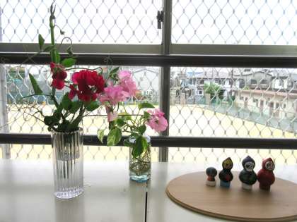 学校の玄関付近にとてもきれいなスイトピーが咲いていたので、教室にも生けました。