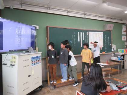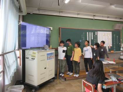 この間の授業参観の様子です。たとえの表現を使って、食べ物の3ヒントクイズを考えました。