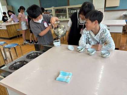 お茶を淹れることをしました。作り方や注ぎ方、おいしいお茶の淹れ方を学びました。