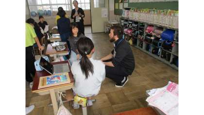 ALTのマックス先生と一緒に学習をしました。好きな色・好きな食べ物・好きな教科などを友達と一緒に尋ねたり答えたりしました。初めは、上手く話せなかった子ども達でしたが、回数を重ねるにつれ、上手に会話を楽しんでいました。