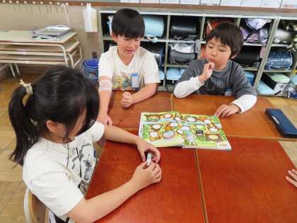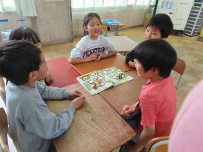 「おしゃべりすごろく」さいころをふって止まったところの質問に答えます。例えば「あなたの宝ものは?」その友だちが答えたことに他の友だちが質問をしていきます。早くゴールした子どもは、質問をどんどんしていきます。
