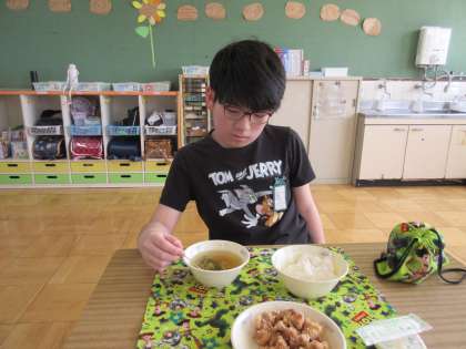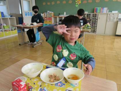 今日の給食の春雨スープに、ラッキーキャロットが入っていました。