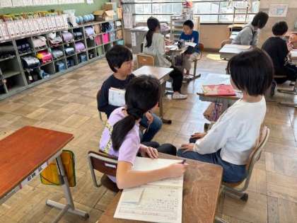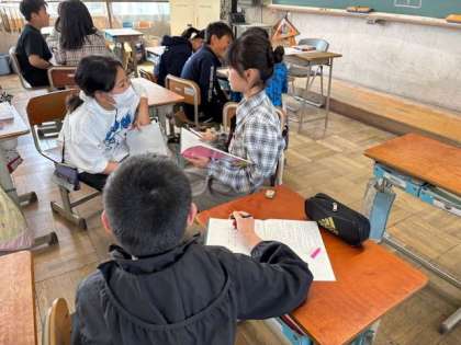 教科担当の先生へインタビューする前に、流れを確認・練習しました。「この訊き方でいいんかな。」「もっと○○したらどうやろか。」と学びを深めている様子が見られました。