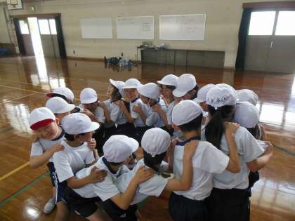 「どうしたら成功すると思う?」と質問すると、「もっと間をつめよう」「心を一つにしよう」と話し合い2回目の挑戦。