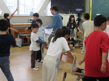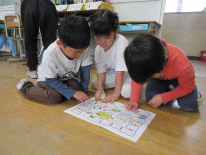あいにくの雨で運動場での体育ができなくなり、教室で「なんでもバスケット」と「すごろく」をして楽しみました。