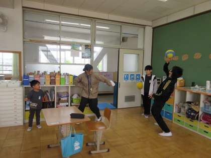 ボールを手に持ち,落とさないように動くことに